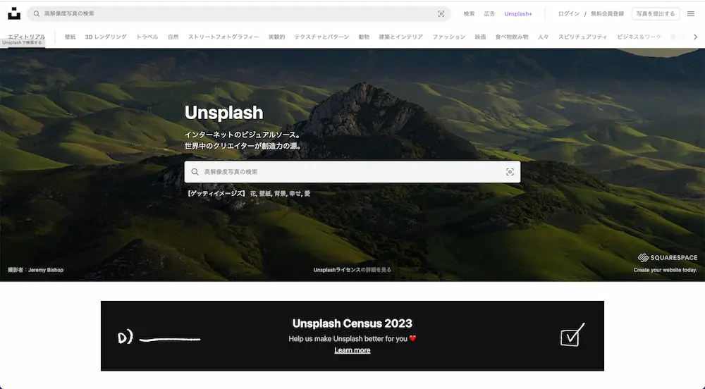 Unsplashは、CC0ライセンスのもと、無料で使える高品質な写真が多数揃っています。検索機能も充実しており、テーマやキーワードで検索することができます。