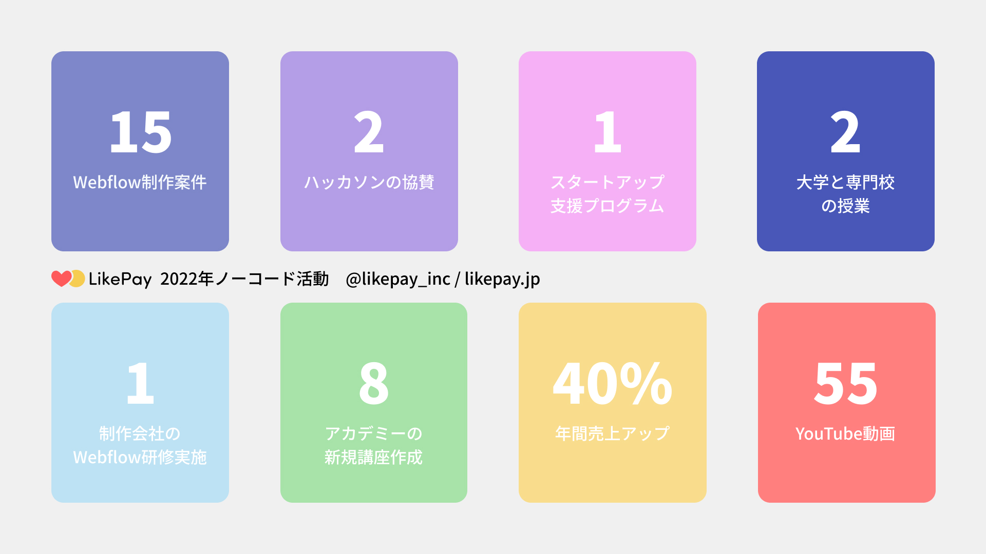 今回は、この感謝の気持ちを込めて、今年を振りかえてノーコード業界におけるLikePayの活動実績について紹介したいと思います。